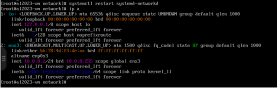 重启网络服务并查看ip