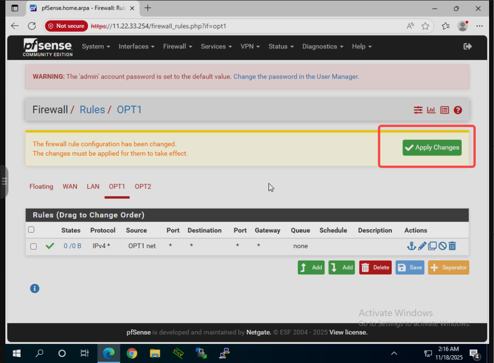 此处的lan口的对端为win设备,使用win设备进入web界面,访问11.22.33.254