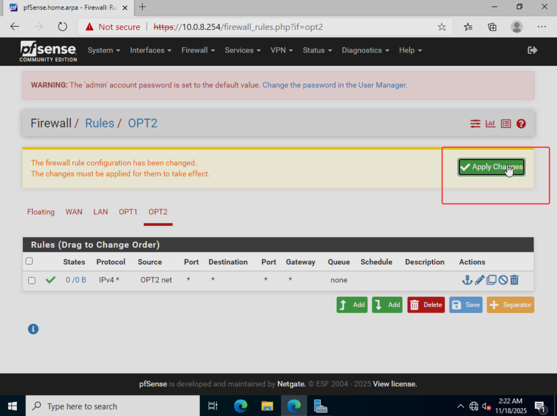 自此,所有设备的网络都正常联通了,网段之间的隔离规则将在后续pfsense二阶段进行配置。
