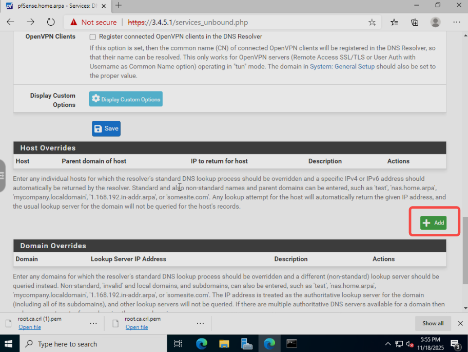 点击 Host Overrides 下方的 Add 按钮,进入 “Edit Host Override” 页面。