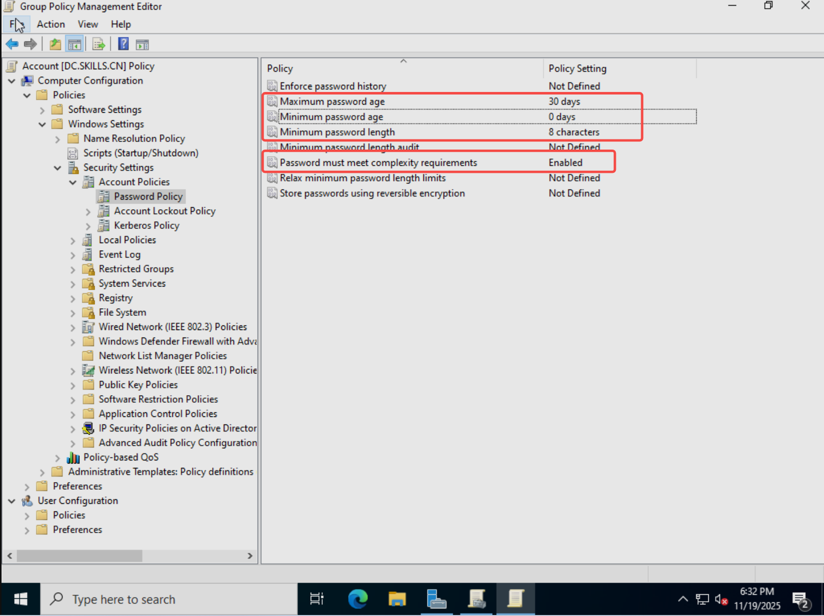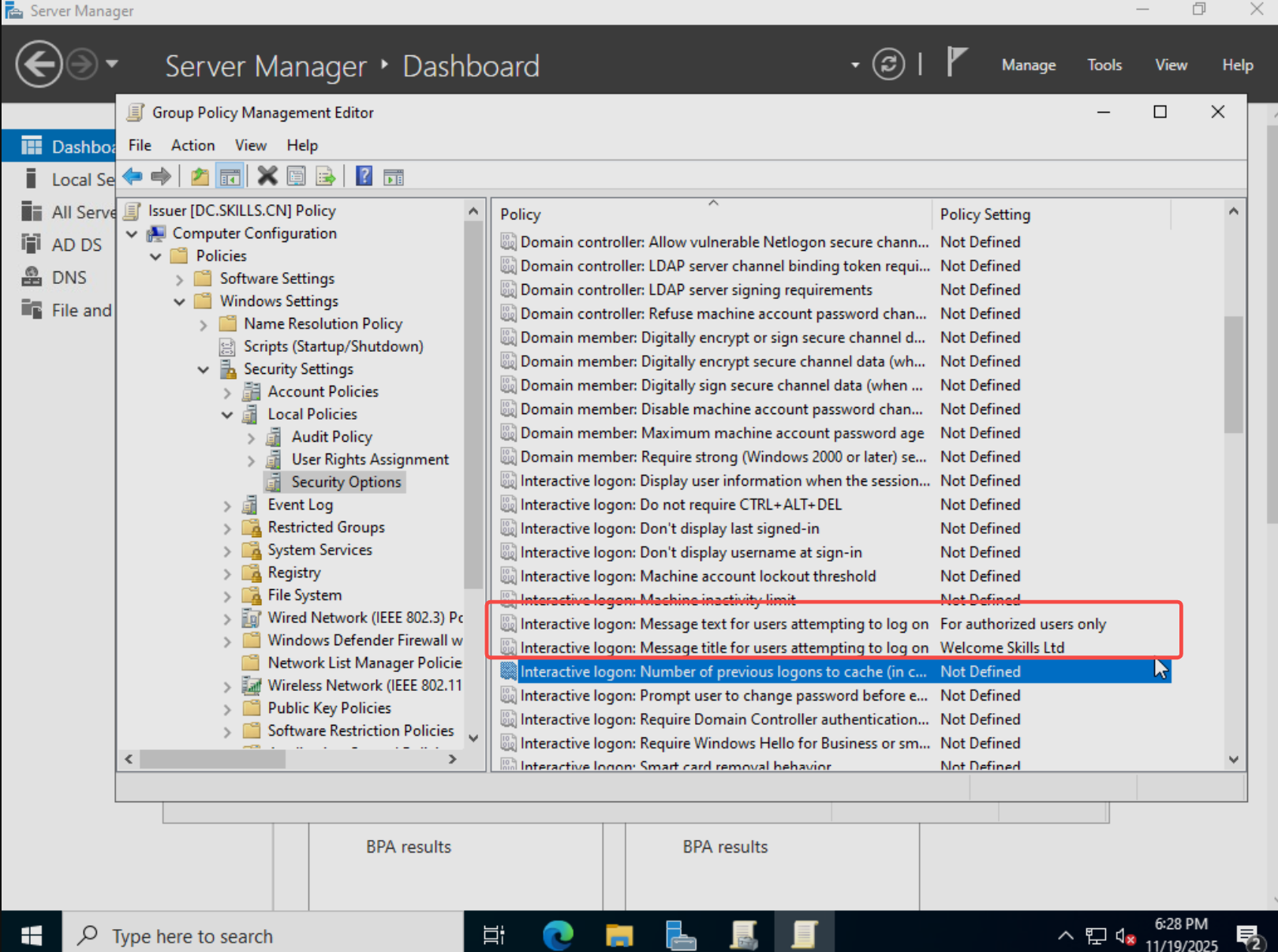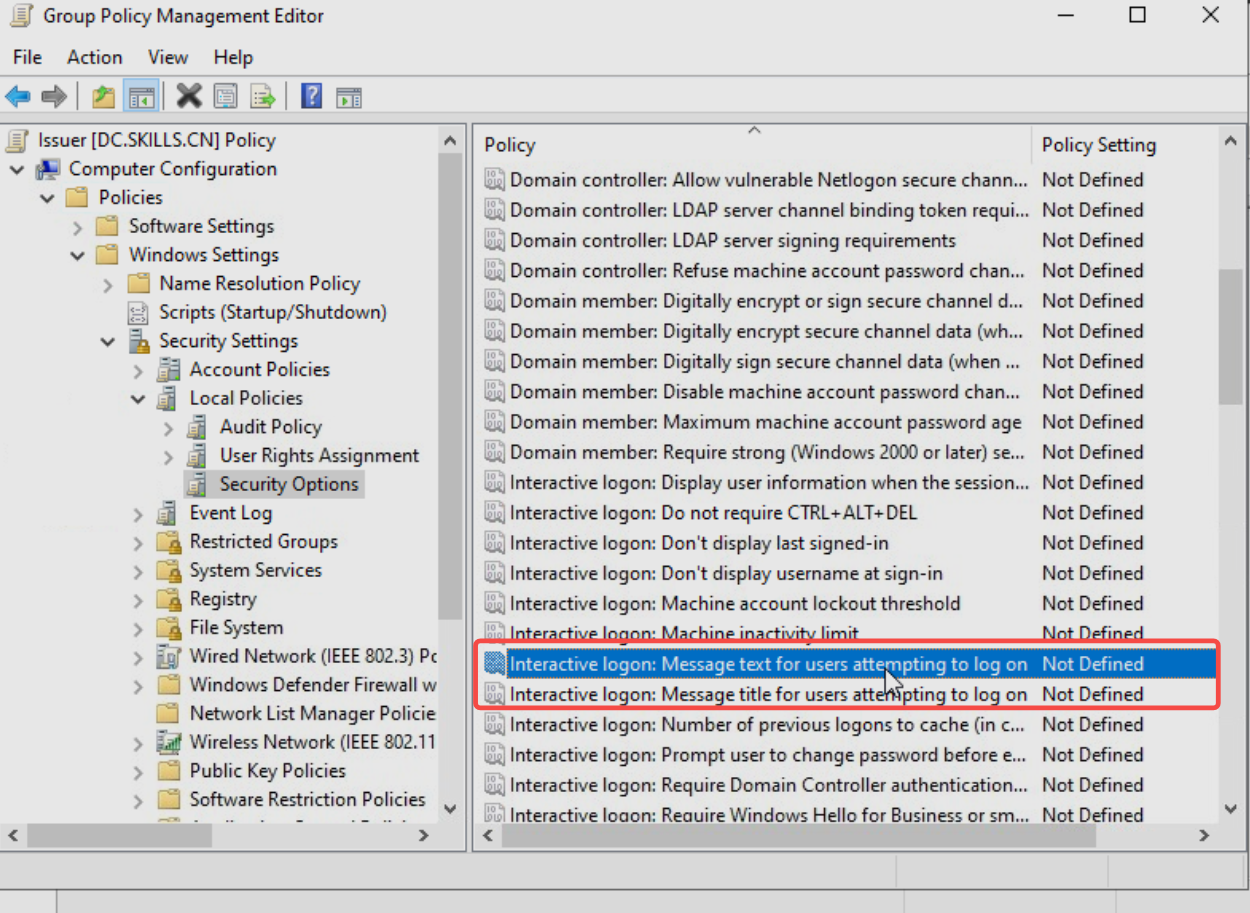 本文是企业级 Windows 域控服务器(DC) 的专项配置,核心围绕skills.cn域的搭建、用户组管理及四类核心策略(登录横幅、密码安全、访问控制、审计监控)展开。适用于 Windows Server 2022 环境,可直接作为标准域控配置模板,兼顾安全性与可操作性,助力快速构建合规的域环境。