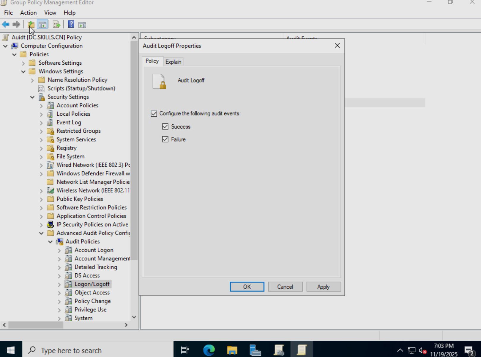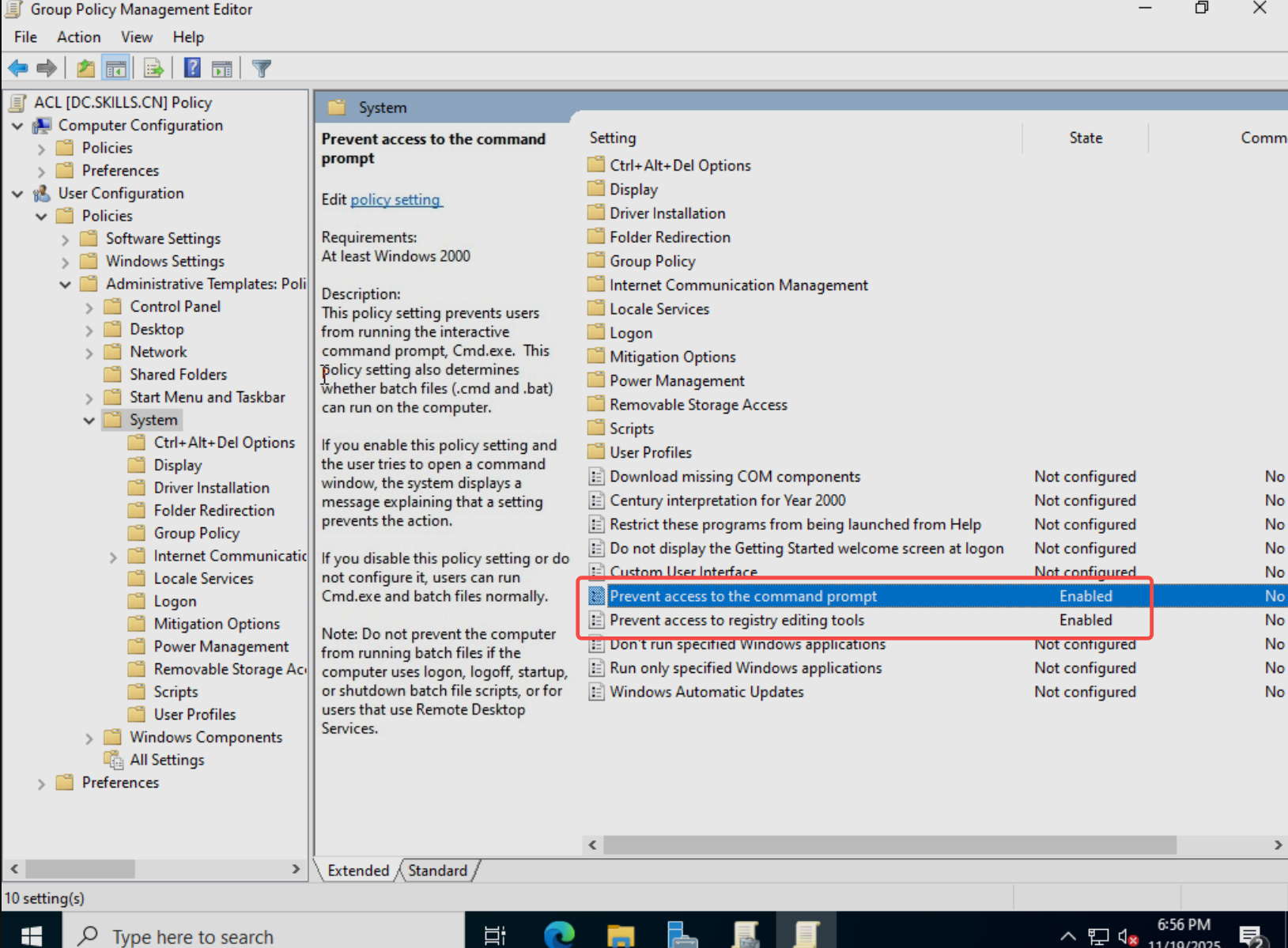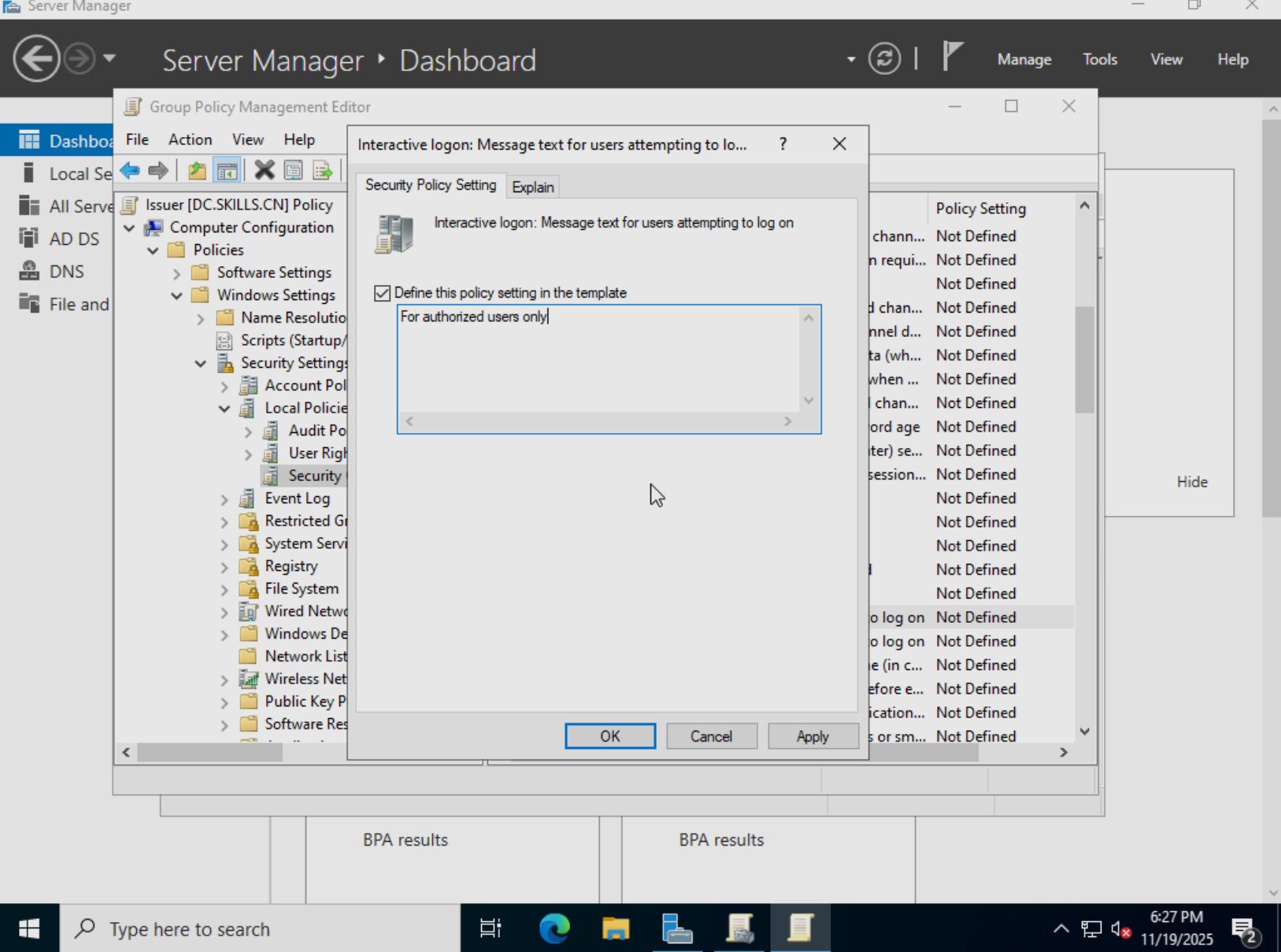 本文是企业级 Windows 域控服务器(DC) 的专项配置,核心围绕skills.cn域的搭建、用户组管理及四类核心策略(登录横幅、密码安全、访问控制、审计监控)展开。适用于 Windows Server 2022 环境,可直接作为标准域控配置模板,兼顾安全性与可操作性,助力快速构建合规的域环境。