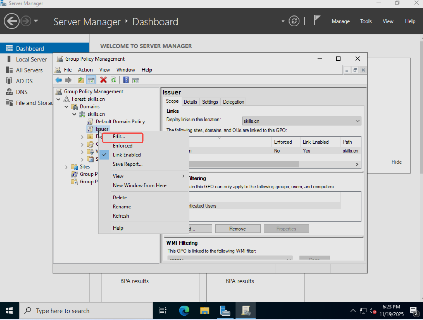 右键【Issuer】GPO→ 【Edit】,打开【 Group Policy Management Editor】