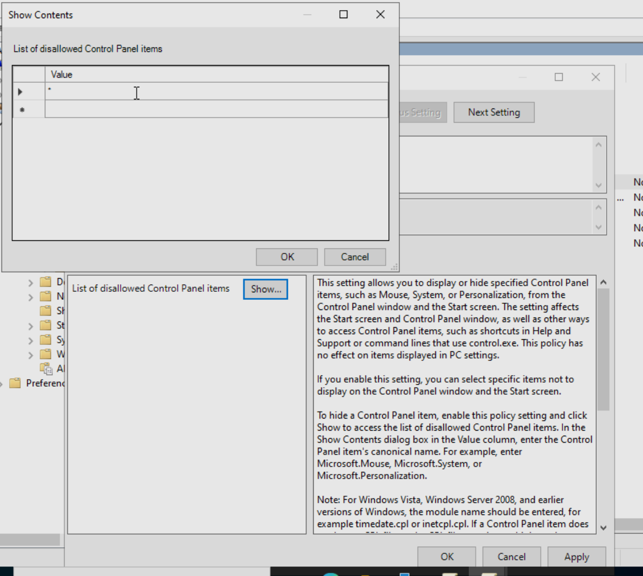 选择开启然后点击Show..之后输入* 隐藏所有选项
