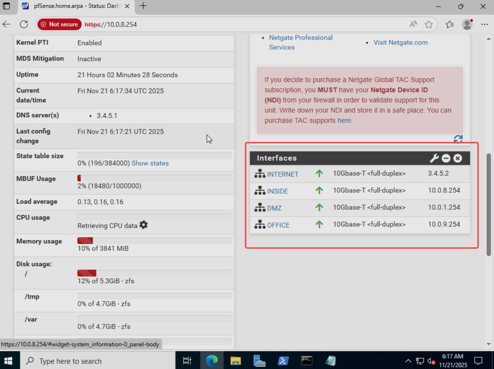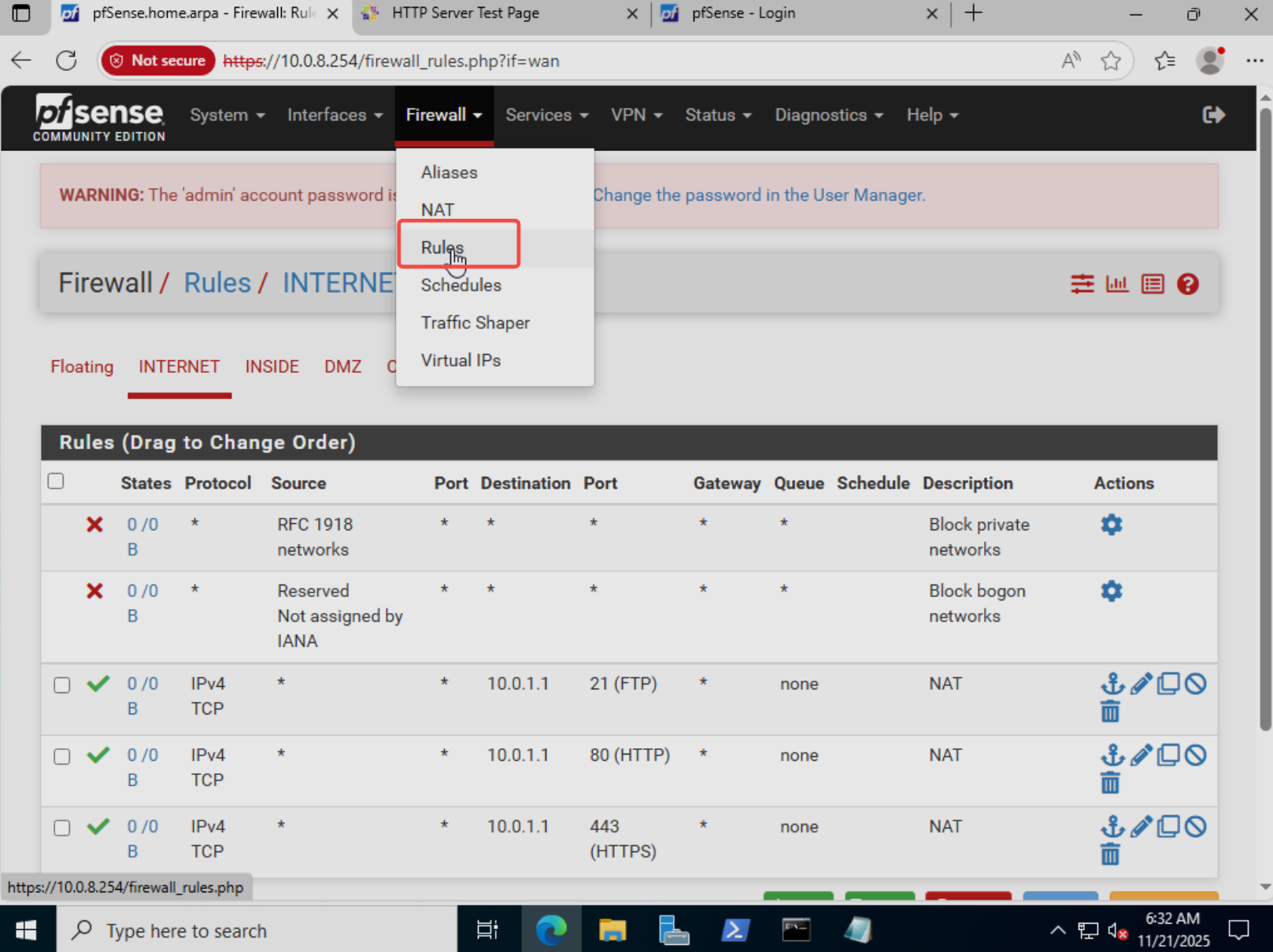 - 登录 pfSense Web 控制台(https://10.0.8.254),使用管理员账户登录;