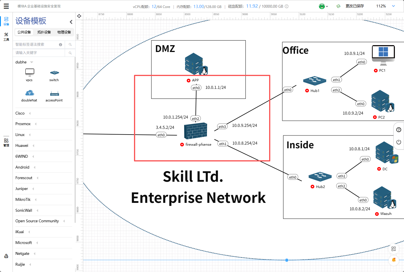 | 内网服务器 | APP 服务器(DMZ):10.0.1.1 Office 区域: DC服务器:10.0.8.1 Wazuh 服务器:10.0.8.2 |