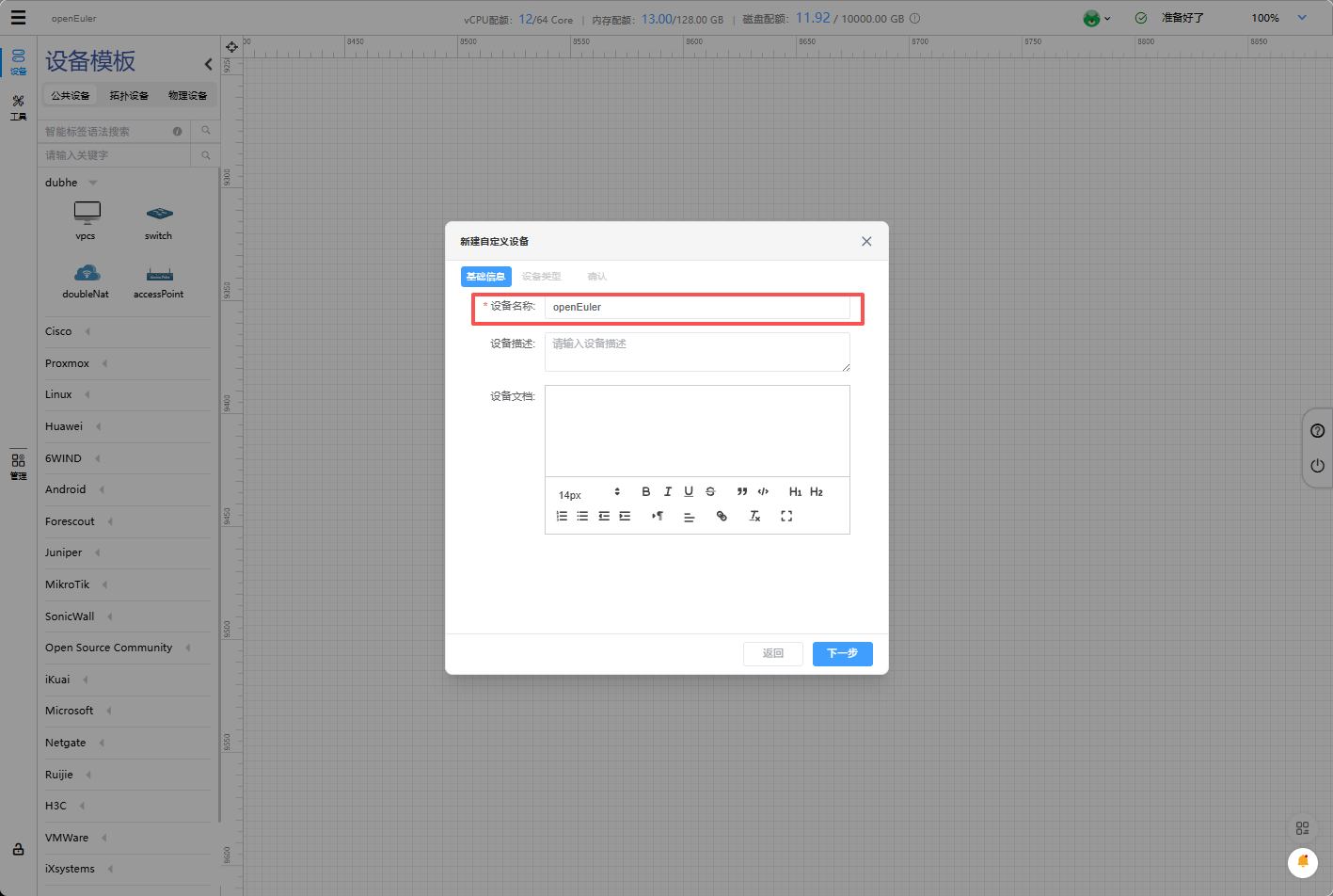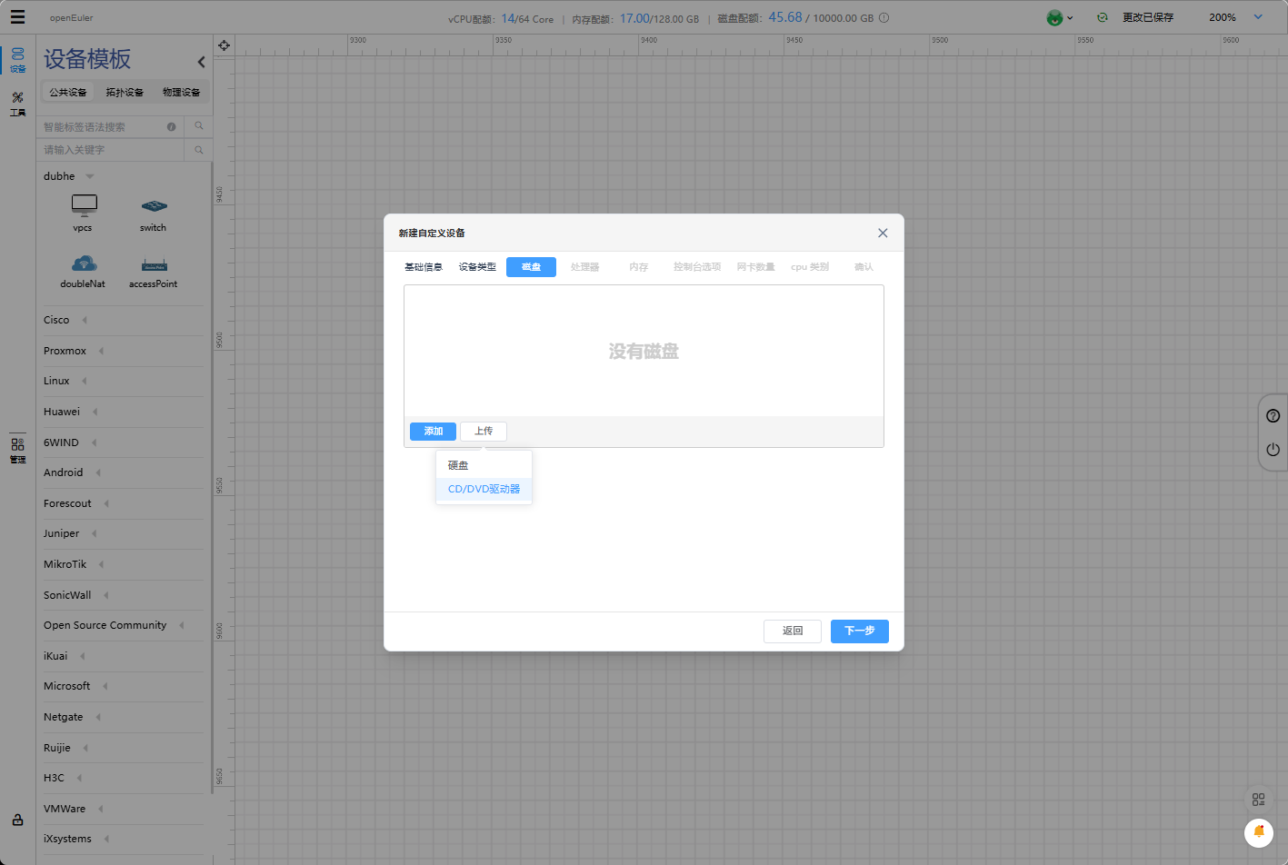 然后依次修改处理器、内存、网卡数量等,到此虚拟设备已经创建成功。