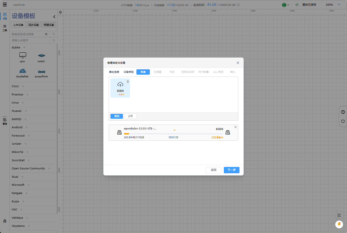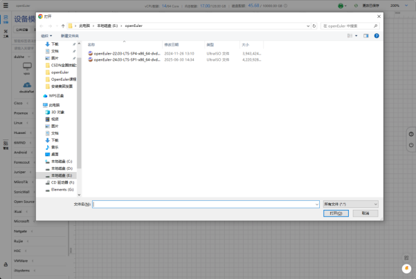 选择电脑里面下载的openEuler镜像文件,等待上传安装:
