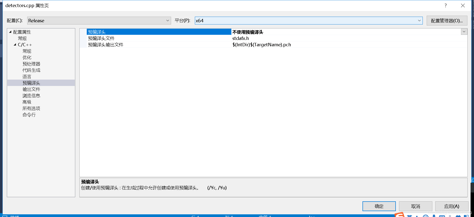 7、添加的detectors.cpp不使用预编译头。