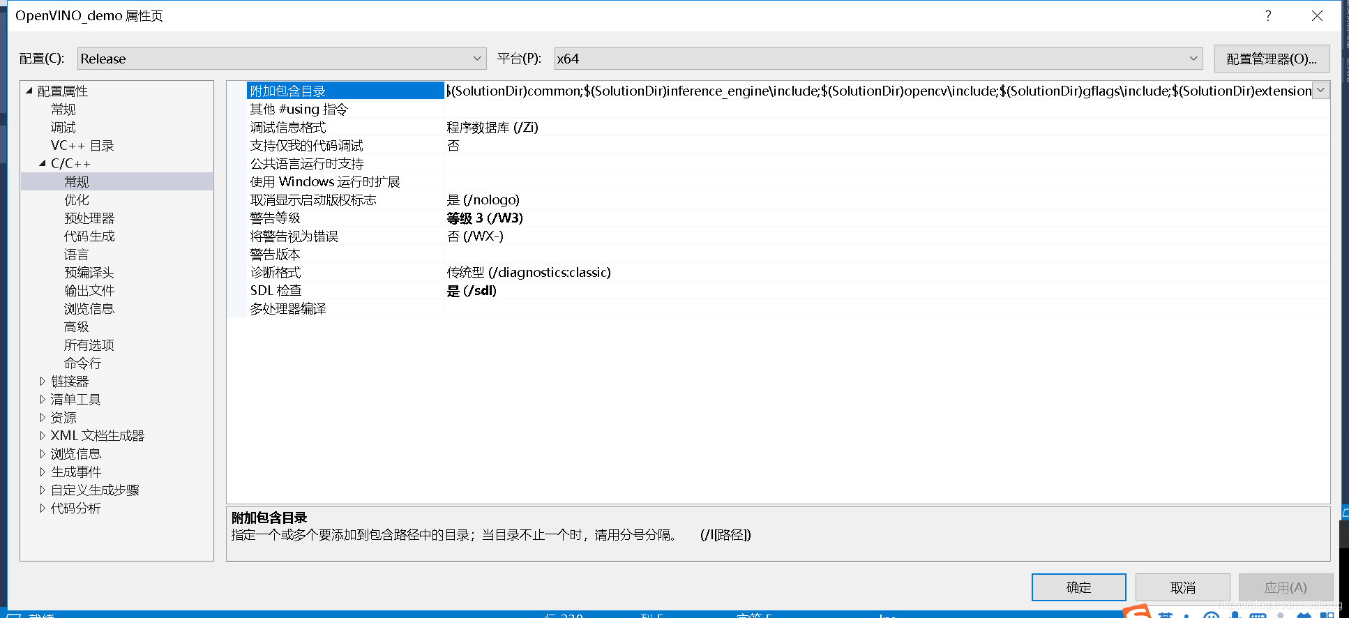 6、从OpenVINO目录拷贝需要的头文件文件夹,添加头文件