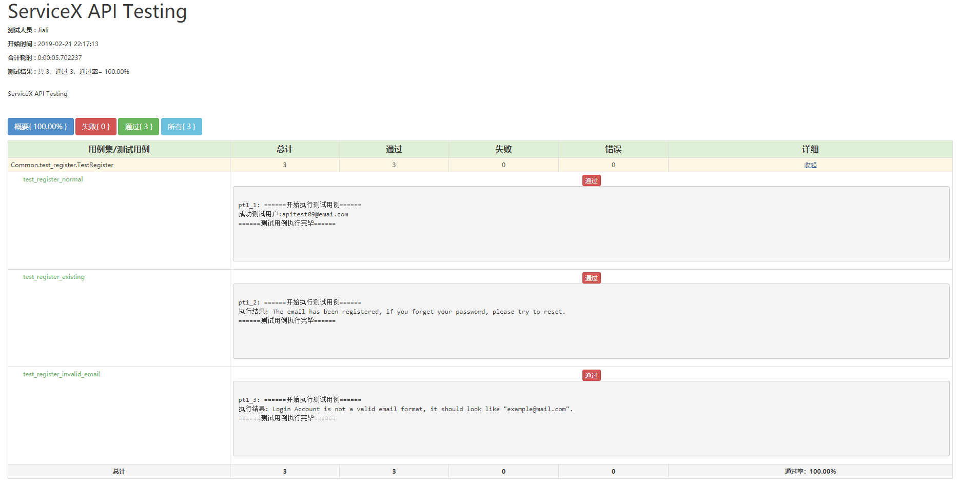 runner=HTMLTestRunnerNew.HTMLTestRunner(stream=file, verbosity=2,title='ServiceX API Testing',description='ServiceX API Testing',tester='Jiali')