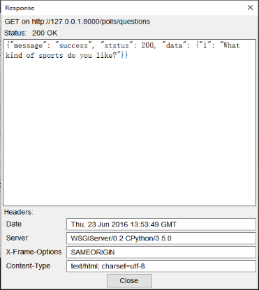 发送GET请求:http://127.0.0.1:8000/polls/questions