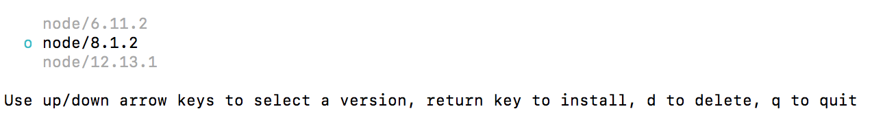 再使用 n ,通过上下键选择需要用的node版本,选择后回车即可,如图