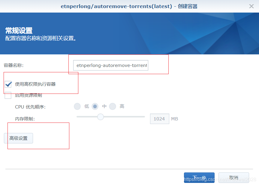下载完成后,双击打开进行设置,同样设置名称,使用高权限执行,点击高级设置
