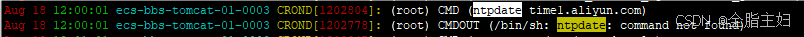 注意:up主这里踩过的坑,ntpdate的命令全路径没有写,直接使用ntpdate命令导致使用了默认的环境变量/bin/sh下去执行ntpdate,从而找不到改命令而报错(查看下图)。因此定时任务中的命令一定要写全路径![]()