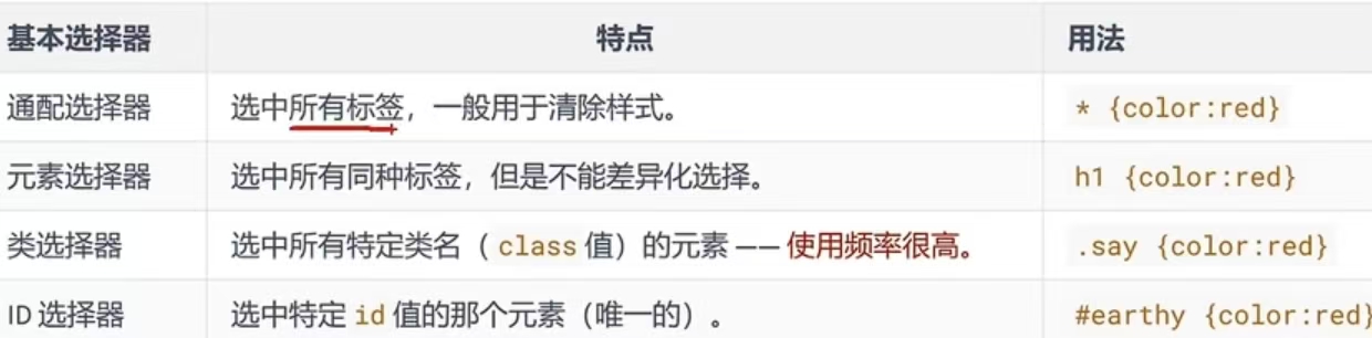 (1)通配选择器:选中所有的 HTML 元素(清除样式时,有很大帮助)