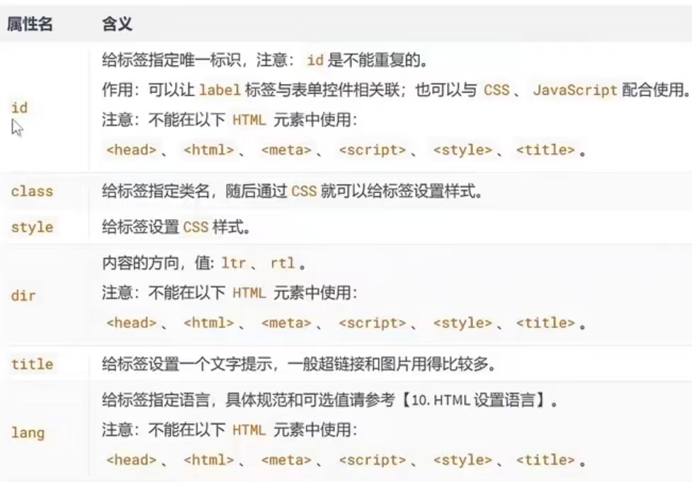 id 属性值:尽量由字母、数字、下划线(_)、短杠(-)组成,最好以字母开头、不要包含空格、区分大小写