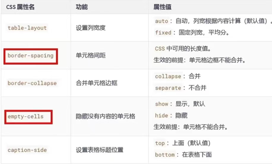 /* 控制单元格间距(生效的前提是:不能合并相邻的边框) */