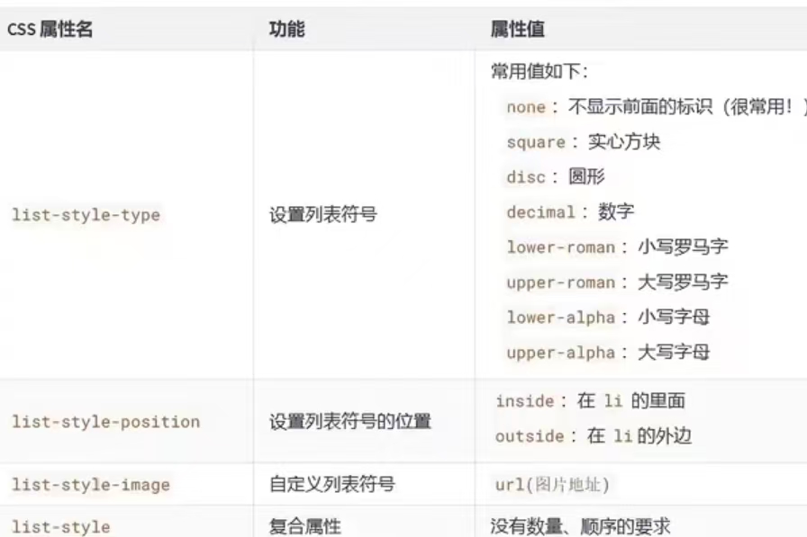 2.CSS列表属性(作用在ul,ol,li元素上)