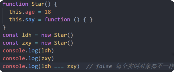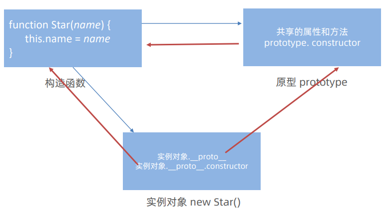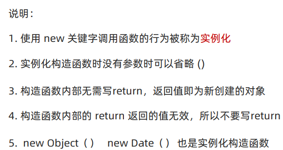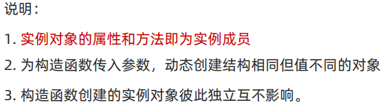 (1)实例成员:通过构造函数创建的对象称为实例对象,实例对象中的属性和方法称为实例成员