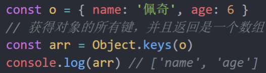 console.log(Object.keys(o)) // 返回数组['uname', 'age']