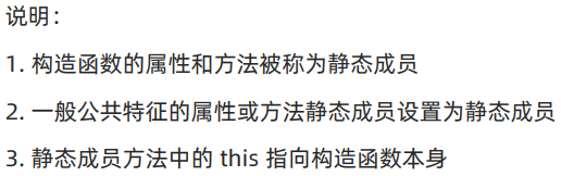 (2)静态成员:构造函数的属性和方法被称为静态成员