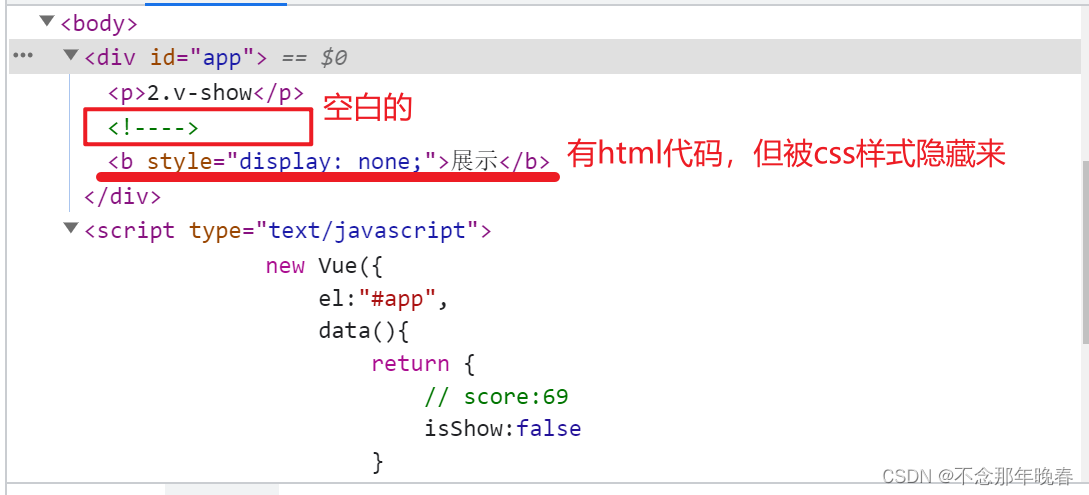 与v-if类似,只是会渲染其身后表达式为false的元素,而且会给这样的元素添加css代码:style="display:none"