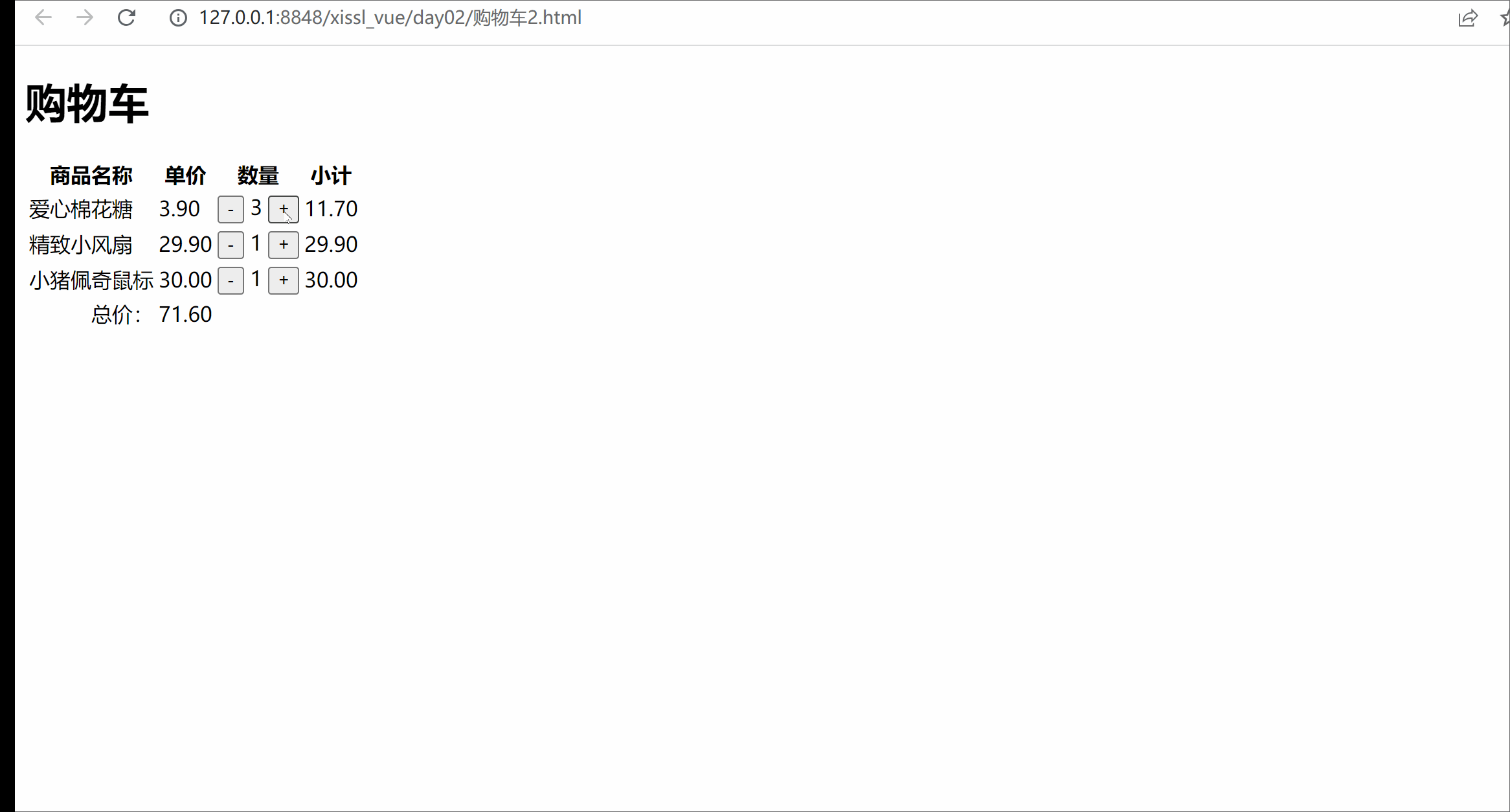 { name: '小猪佩奇鼠标', price: 30, quantity: 1 }