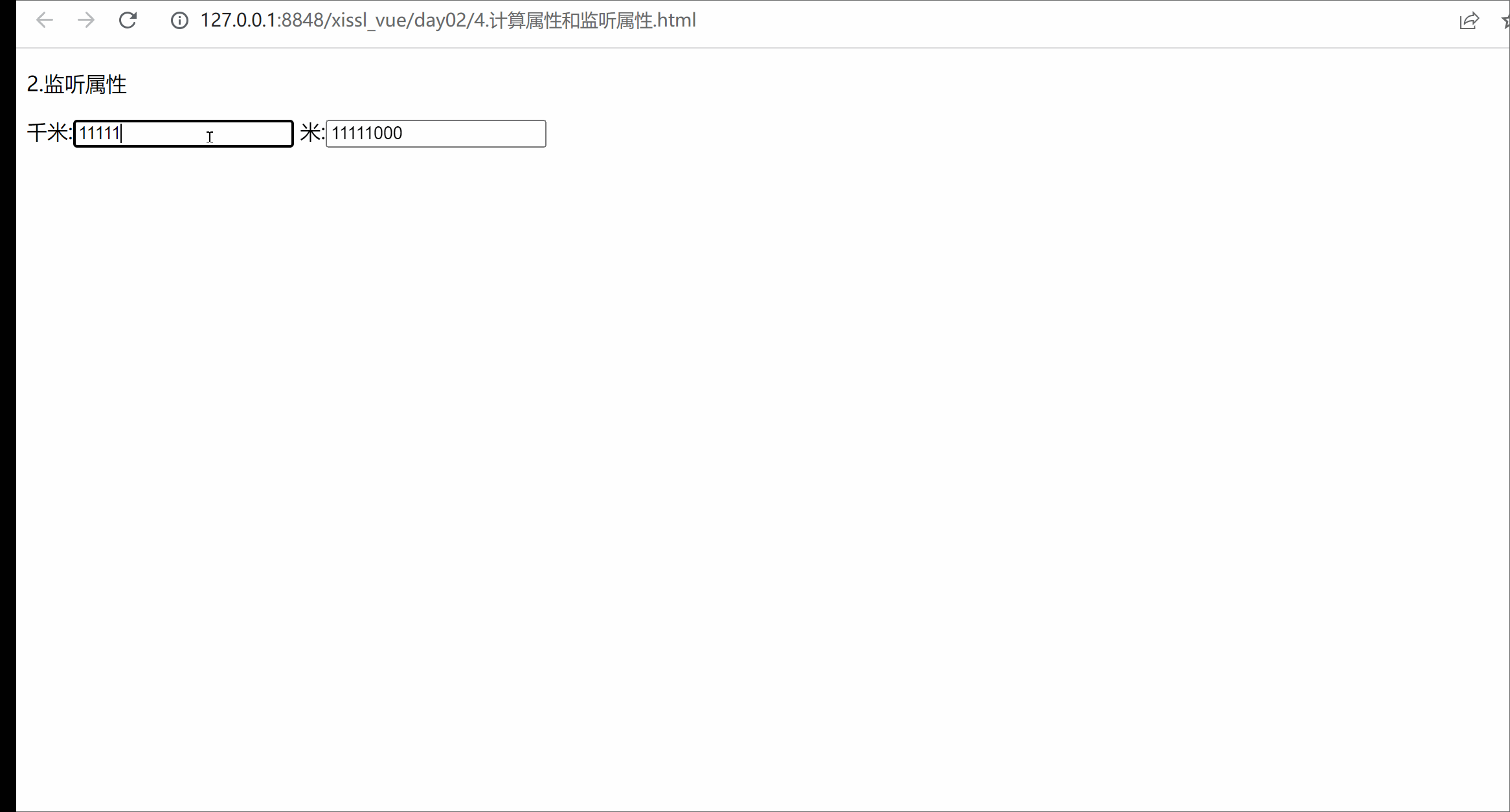 计算属性是一个变量影响另一个变量,单向影响。监听属性是双向影响。