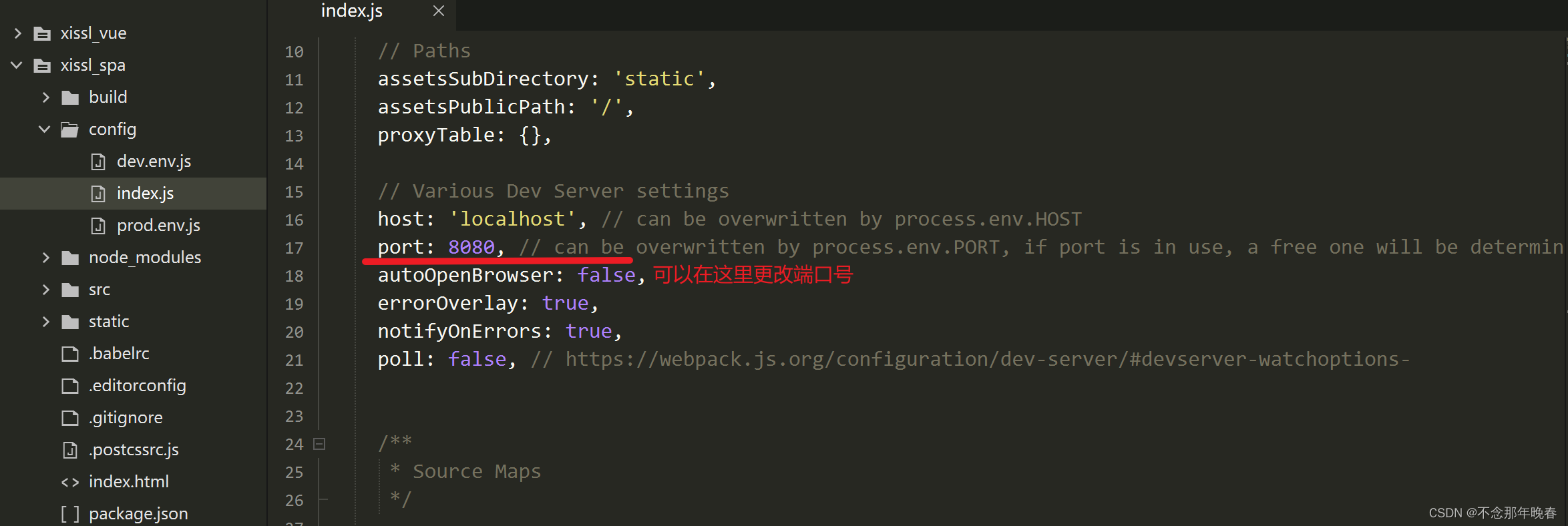 - index.js 这个文件进行配置代理服务器,例如:端口号的修改