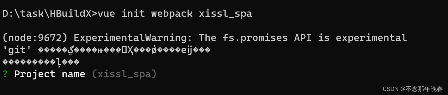 2. 进入cmd窗口后输入vue init webpack xxx(xxx为项目名称,不能是中文和大写字母)