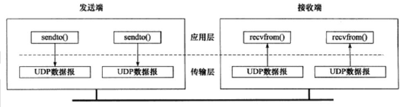 UDP只有一个socket接收缓冲区,没有发送缓冲区,只要有数据就发,不管对方是否可以正确接收。