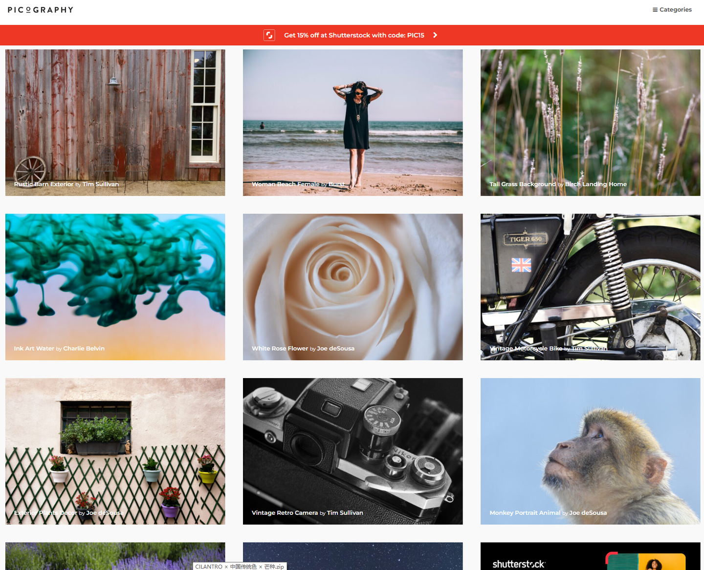 网站主要以提供高质量视频素材为主,但也有大量的配乐、音效、图片、字体等素材。主要说下图片素材,分有很多类型,比如摄影图片、插画图片、设计背景图片、卡通图等等这里都能找到,图片素材全部都是高清无水印,很多都是用户实拍上传,质量非常高,注册就能获取10次免费下载次数。