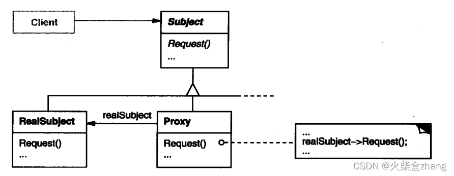 - 保存一个引用使得代理可以访问实体。若RealSubject和Subject的接口相同,Proxy会引用Subject。