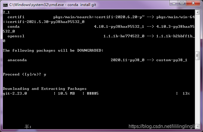 安装之后还是不可以,因此进行第二次尝试:conda install git。
