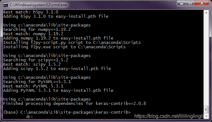 这里我们将这个文件夹拷贝到文件夹并在keras_contrib下直接启动命令行窗口。![]()
