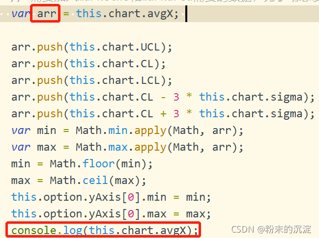 本来avgX里只有25个数据,为了不污染avgX,我们使用了中间变量arr,然后在arr里添加了5个数据,打印原数组的时候会惊奇地发现avgX也变成了30个数据!这是因为数组之类引用数据类型,如果直接相等,相等于存储地址相等了,只要修改了一方,另一方会同步修改,正确的做法是在原数组里slice(0),全部截取原数组的数据,这时候我们不管如何修改arr,avgX都不会发生改变了。
