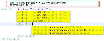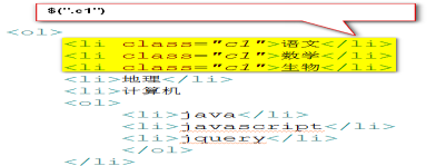 2)class选择器:通过class属性,获得一组jquery对象,可以在不同html标签中