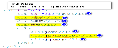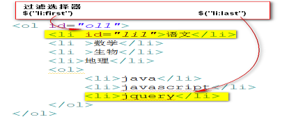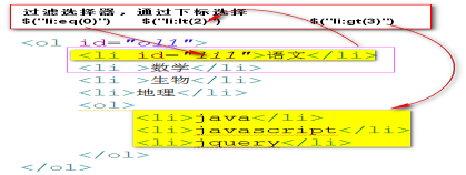c)过滤选择器:对选出一组jquery对象再次进行过滤