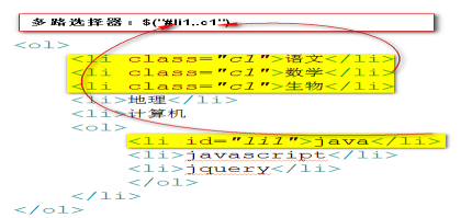 $("#id,.c1") :以id选择的jquery对象+以class="c1"选择的jquery对象