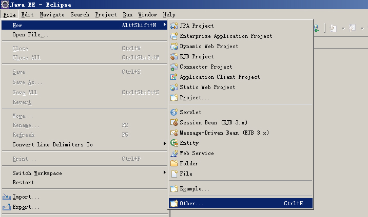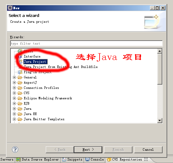 (2)创建标准Java项目,选择“File”—>“New”—>“Other”;然后在弹出来的对话框中选择“Java Project”创建标准Java项目;