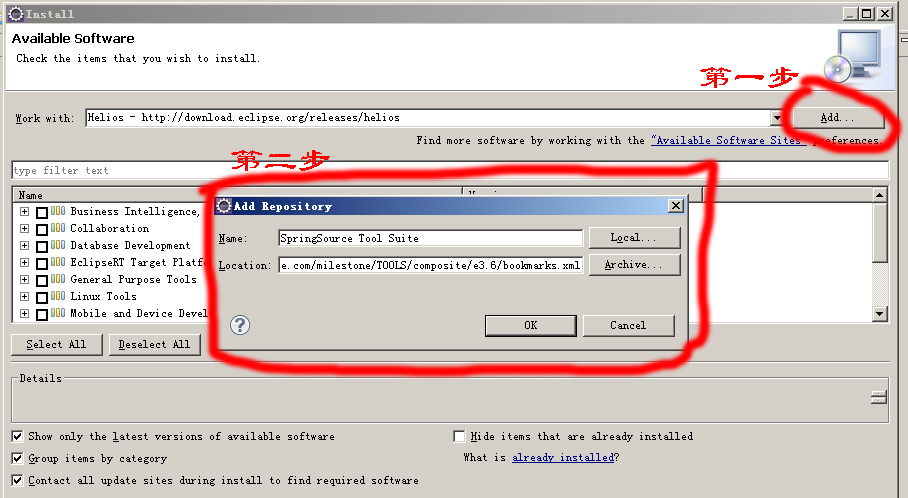 Location为:http://dist.springsource.com/release/TOOLS/update/e3.6