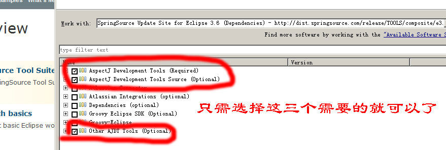 3、安装SpringSource Tool Suite插件,只需安装如图2-5所选中的就可以: