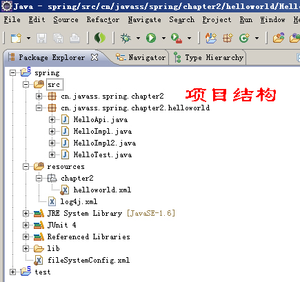 7、自此一个完整的Spring Hello World已完成,是不是很简单,让我们深入理解下容器和Bean吧。