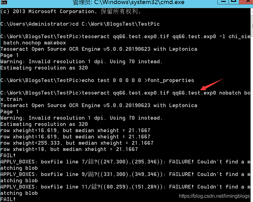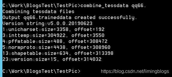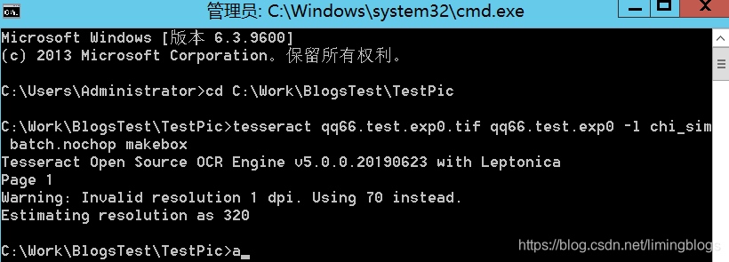 3,cmd指定目录到 cd C:\Work\BlogsTest\TestPic,要识别图片的文件夹 识别:tesseract test.png result -l chi_sim