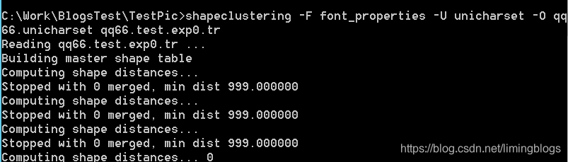 shapeclustering -F font_properties -U unicharset -O qq66.unicharset qq66.test.exp0.tr