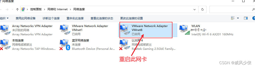2.2解决办法:重启win10的虚拟机网卡(先禁用再启用)