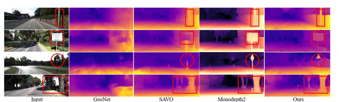 上图是在KITTI数据集上测试的深度估计结果,得益于论文提出的三角化过程和多帧深度优化,算法在边缘估计上得到了较好的表现能力。