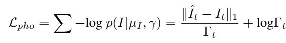 然而视场合成是建立在光度一致性假设下,实际中可能并不适用。为了缓解这种情况,我们将这种情况视为观测噪声并使用深度神经网络来对每个RGB像素估计一个后验概率分布。通过将观测噪声设想为拉普拉斯形式,在线学习过程可以被建模为最小化负对数,从而来转换光度损失: