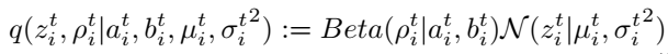 在线推导阶段,我们在每个时间戳上寻找的最大后验估计,可用的高斯分布和贝塔分布来近似: